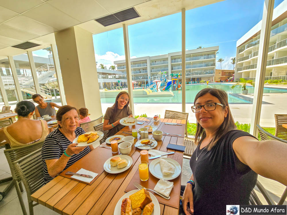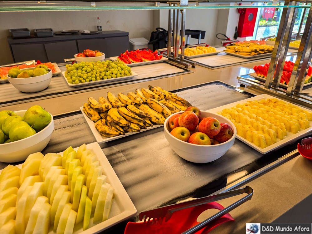 Uma das coisas que mais gostei no restaurante principal foi o espaço: amplo, confortável e bem organizado. Ao invés de concentrar toda a comida em uma única ilha, as opções estavam distribuídas por tipo ao longo do ambiente, evitando tumulto. Durante toda a nossa estadia, não pegamos fila nenhuma, seja no café da manhã, no almoço ou no jantar. Simplesmente excelente!