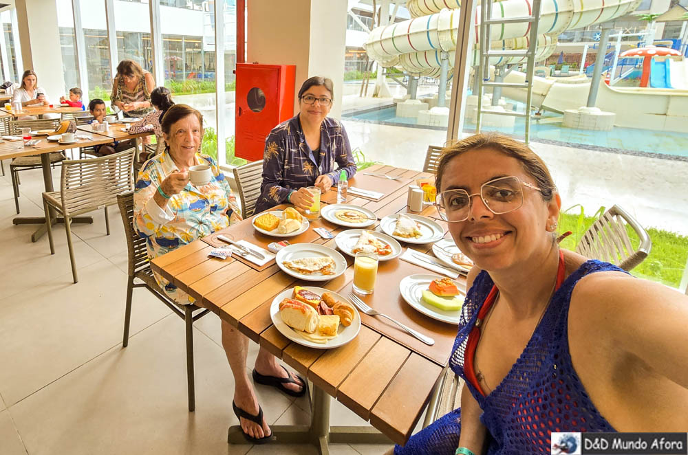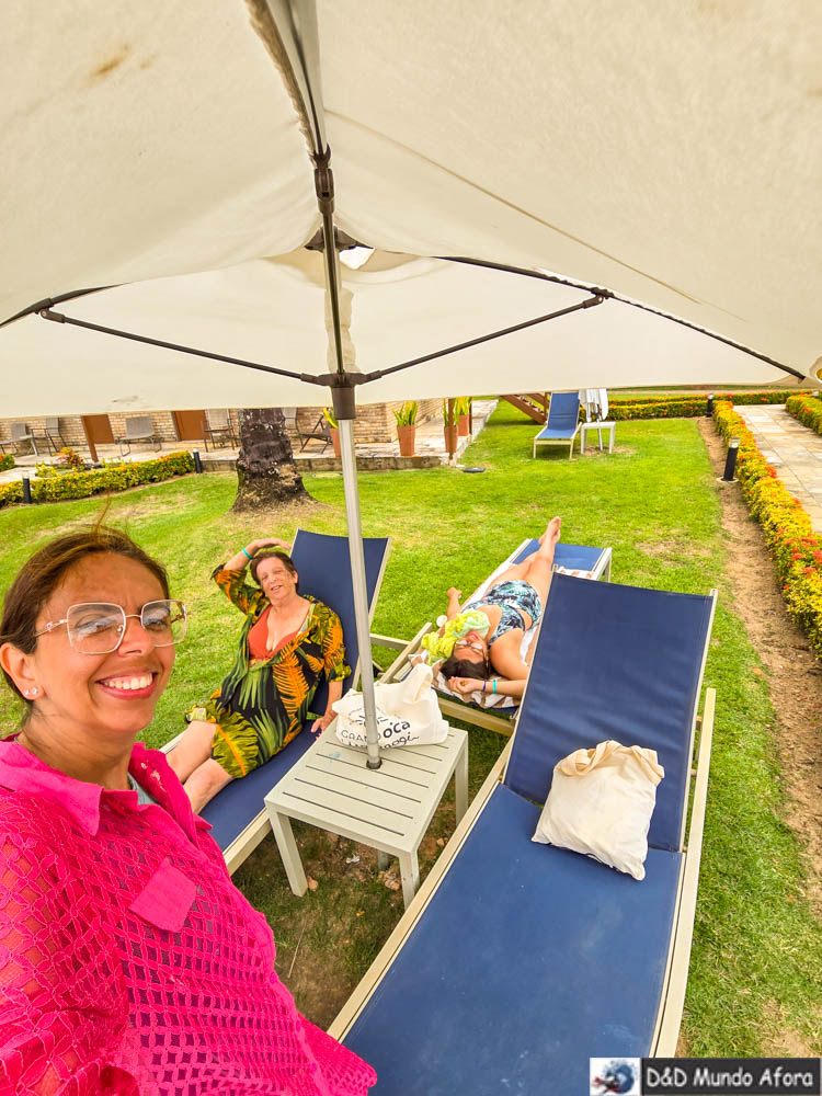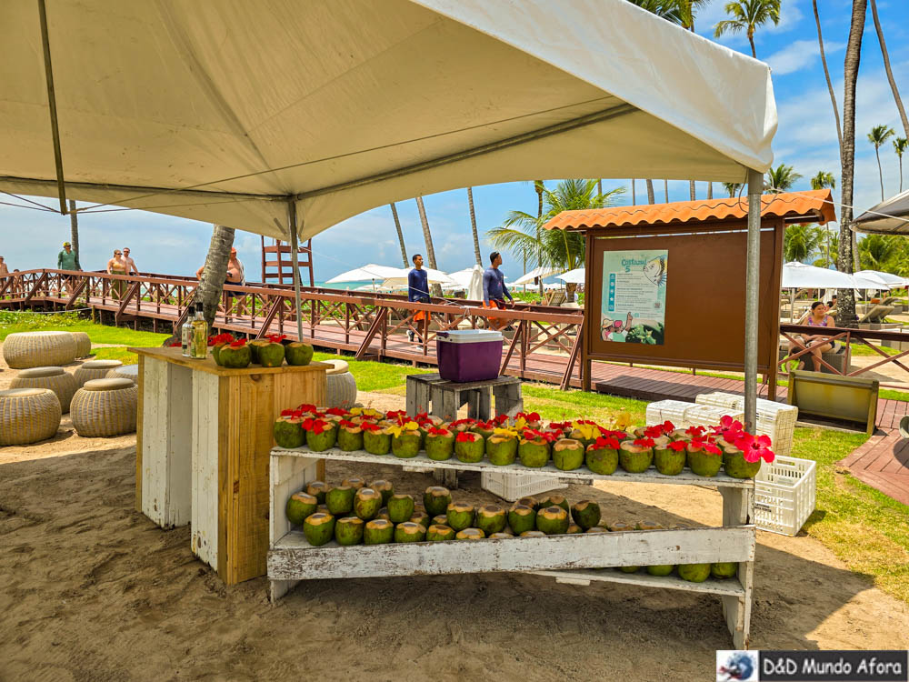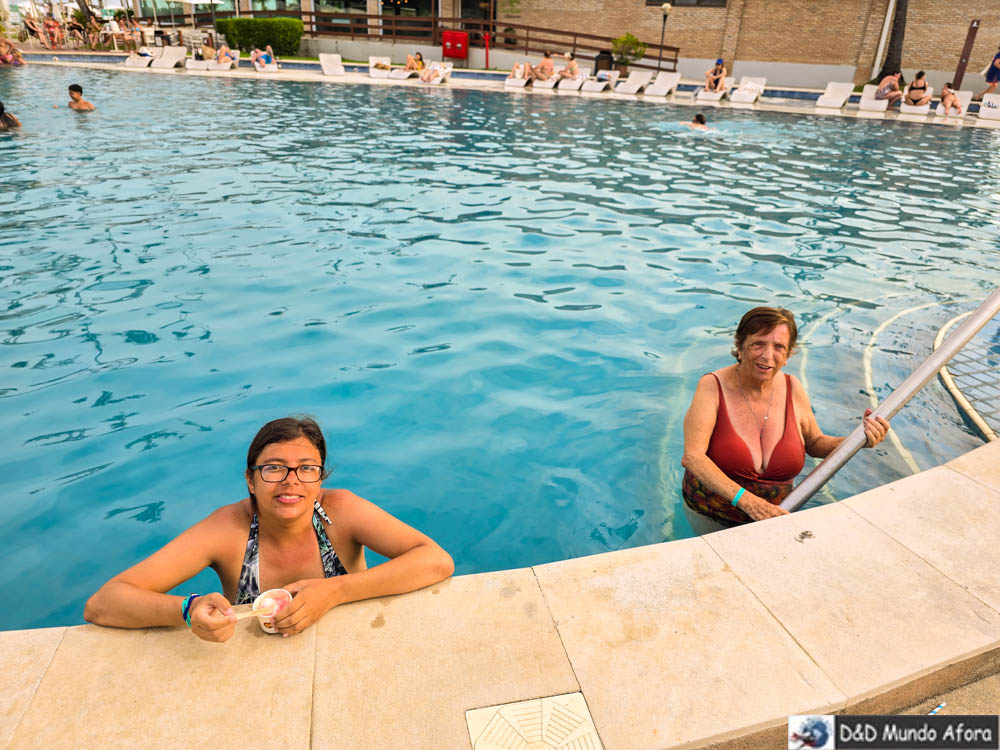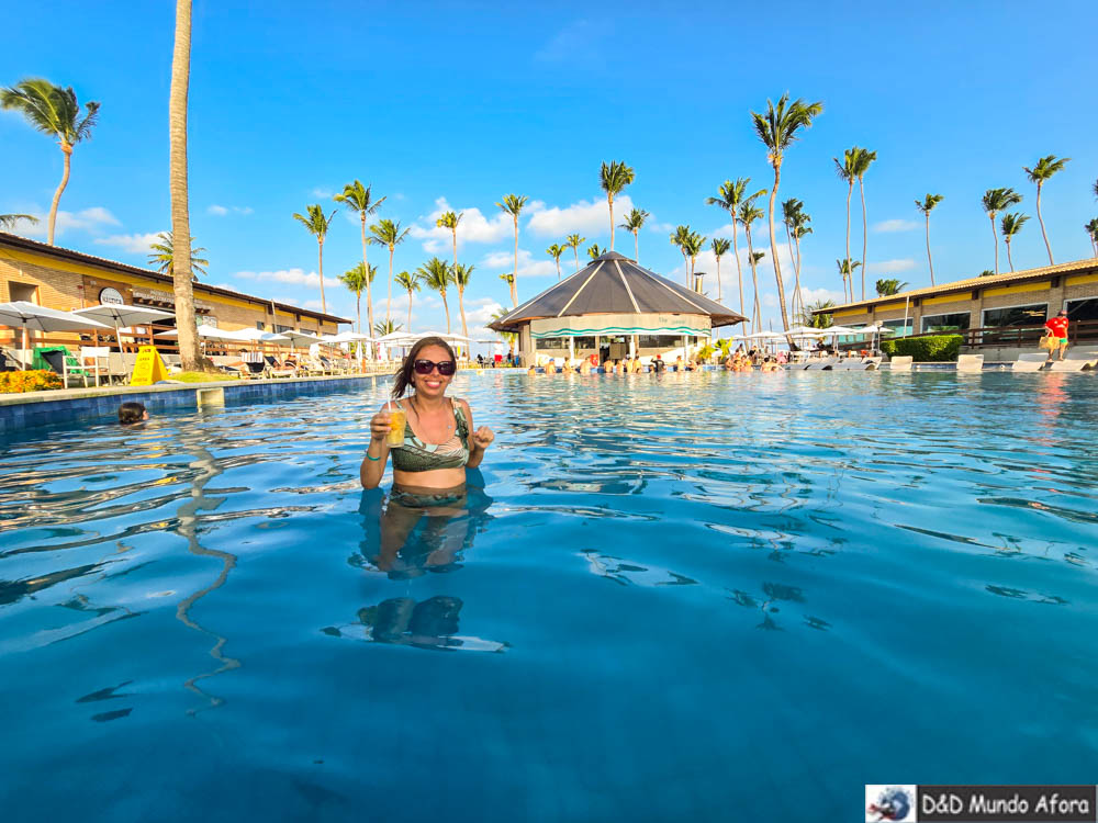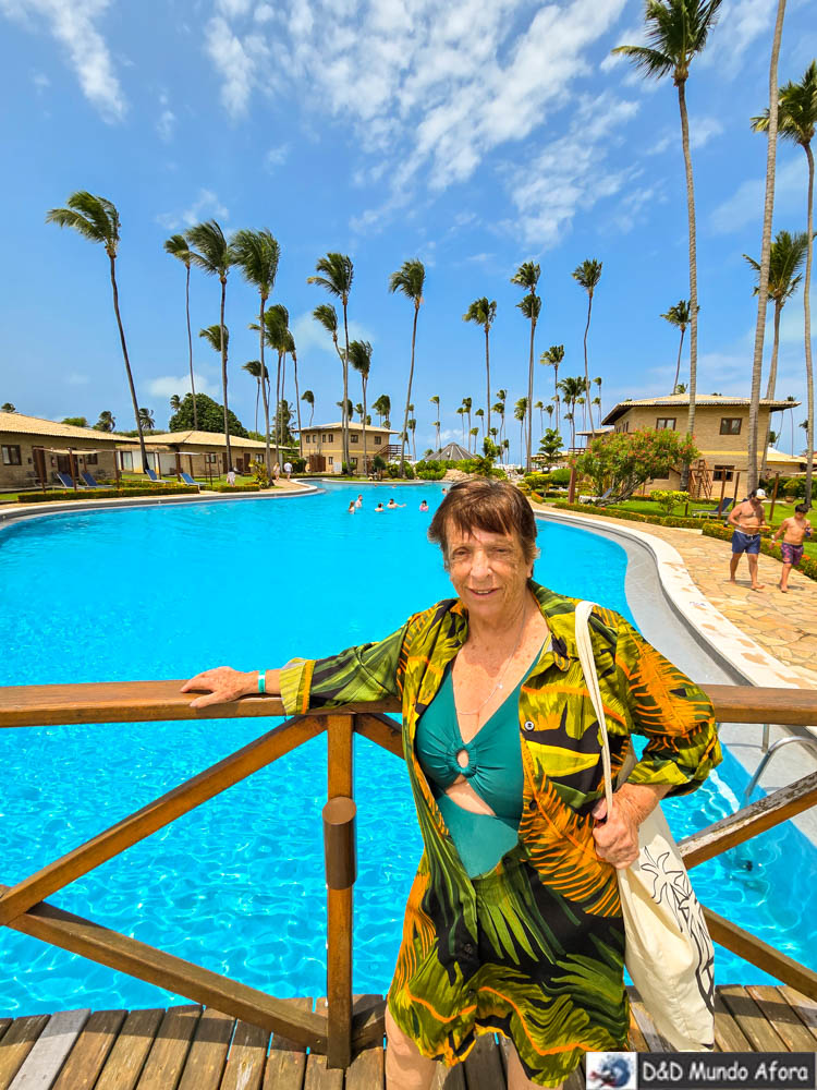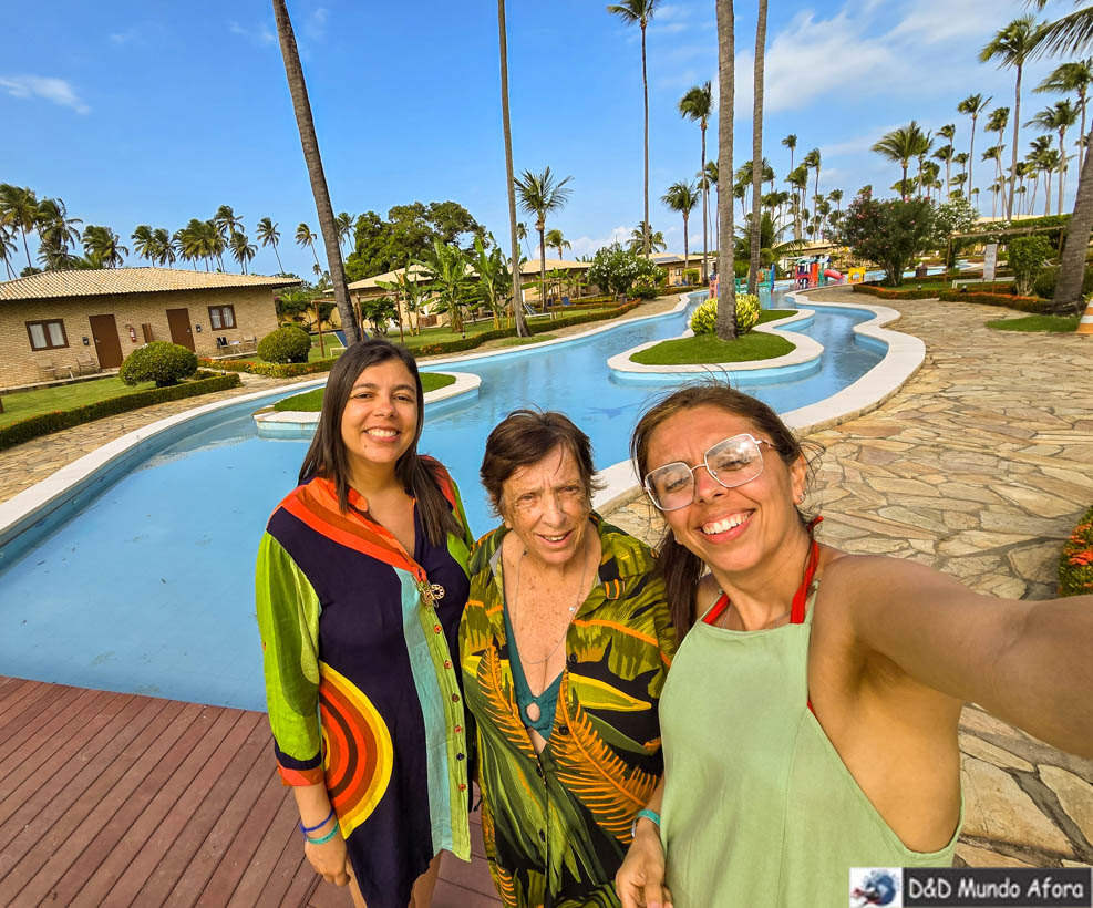 Com as malas guardadas, começamos a aproveitar tudo: piscina, petiscos, bebidas, o mar à frente, parque aquático e todas as comodidades que o resort oferece.