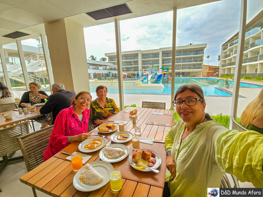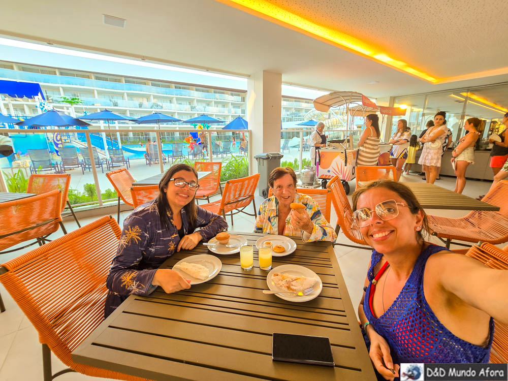 Mais um dia com tudo incluso… gente, isso é bom demais! Tudo começa com aquele café da manhã farto, que já valeria por um almoço. Mas em resort all inclusive não dá pra parar por aí — tem que deixar espaço para todas as delícias que vêm ao longo do dia. Afinal, nosso objetivo aqui é simples: comer e beber sem culpa, né?
