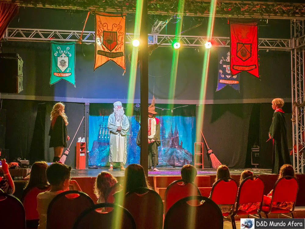 Pra fechar, ainda assistimos a um espetáculo muito bacana. Cada dia, tem um tema diferente (hoje, foi sobre Harry Potter) e um show.