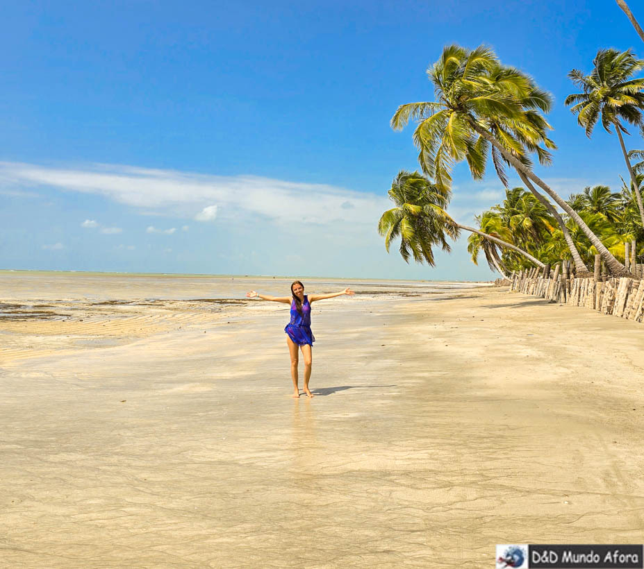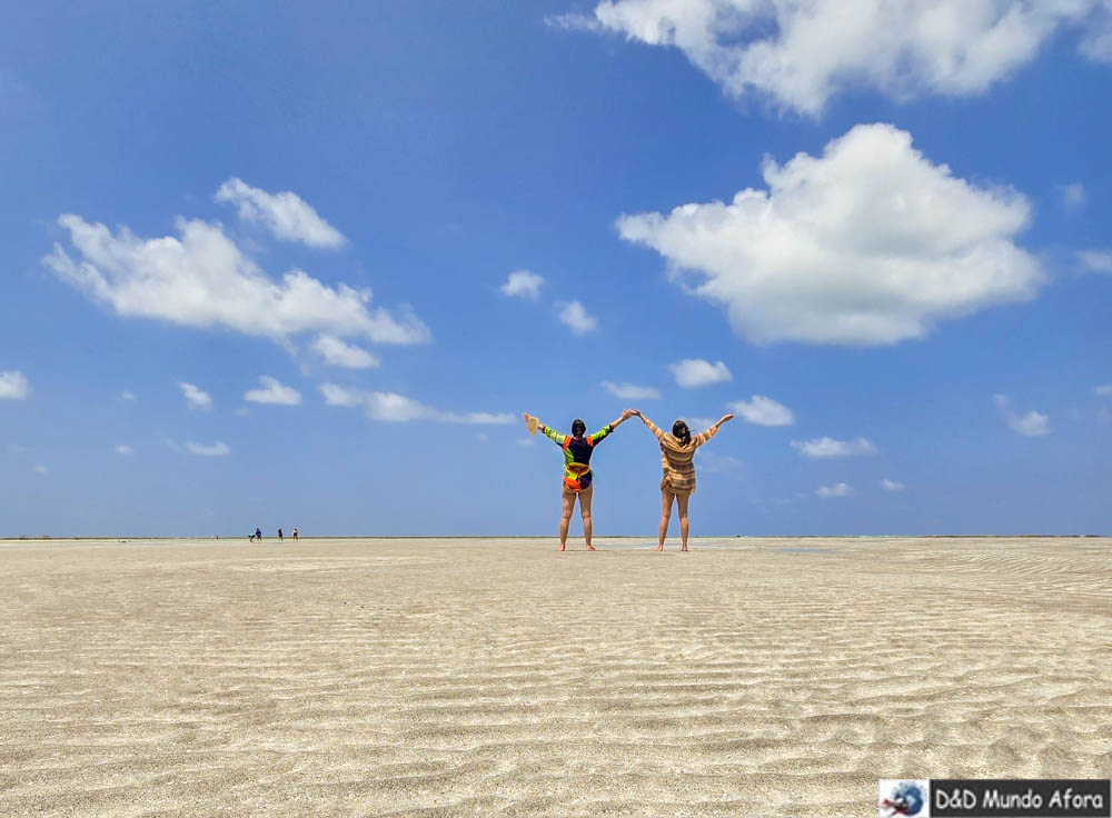 Nosso dia começou cedo, como de costume. Depois de um café da manhã delicioso, eu e Danubia seguimos para uma caminhada à beira-mar até Antunes. No retorno, aproveitamos a maré zerada para atravessar o extenso banco de areia, onde o mar havia dado lugar à uma imensidão dourada diante dos nossos olhos.