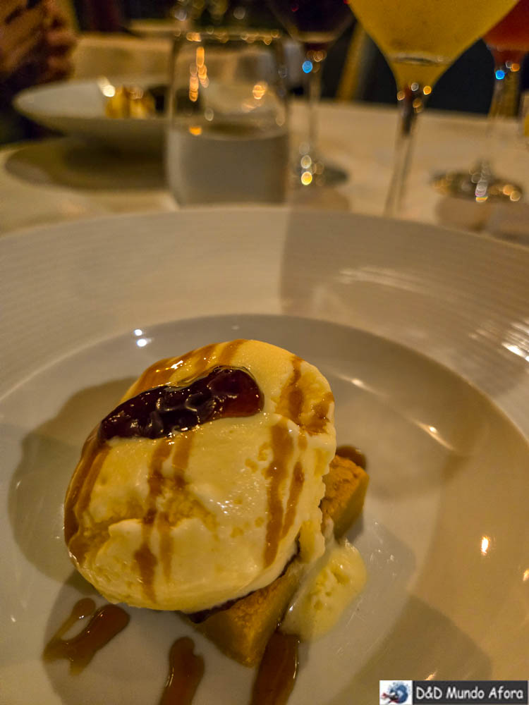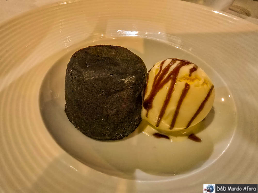 Nos pratos principais, peixe com arroz cremoso de camarão e filé mignon com purê de batata, bacon, molho demi-glace e vagem verde. Para finalizar, as sobremesas: brownie de chocolate branco com sorvete e petit gâteau recheado com creme de chocolate, crumble crocante e sorvete.