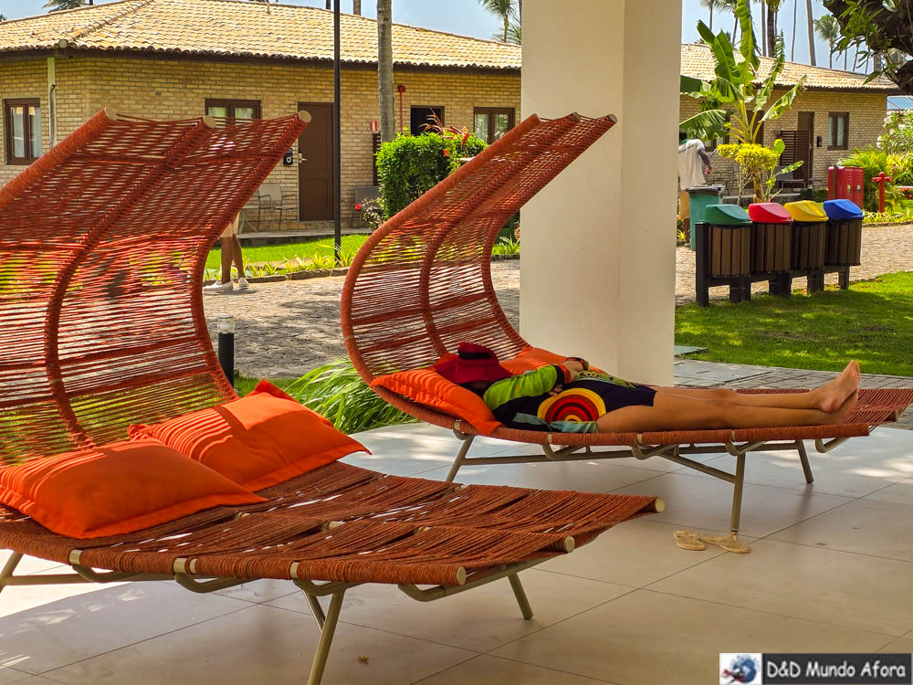 Depois das fotos, ficamos em uma espreguiçadeira do resort na praia e almoçamos petiscos e lanches. E ainda teve mergulho no mar e na piscina para refrescar. Que vida difícil…