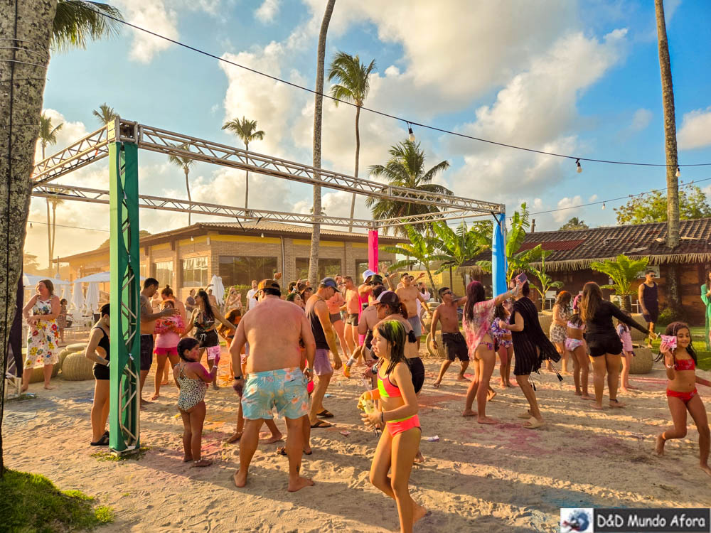 À tarde, participamos de uma atividade super divertida: a Festa das Cores! Todos jogaram pó colorido para o alto, deixando o ar tomado por uma explosão de cores, muita música e animação.